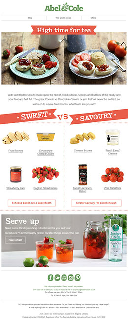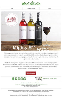 The 'Abel & Cole Thymes' was a segmented newsletters targeted at customers who had signed up but with no purchase history. The brief for these emails was to create a monthly insight into what was seasonal, and new to the company to entice customer conversion. The feel was to be more editorial, less sales driven.